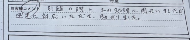 作業、対応につきましてお客様から感謝の声、