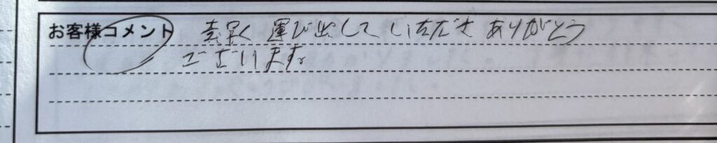 「素早く運び出していただきありがとうございました。」