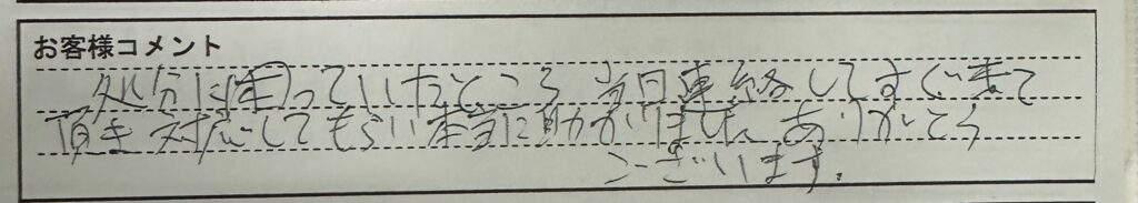 お客様から感謝のお言葉を頂きましたので、