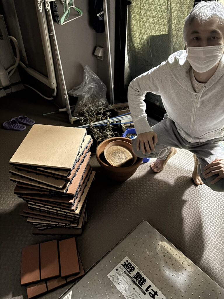 3️⃣ バルコニータイルを一枚ずつ外し、