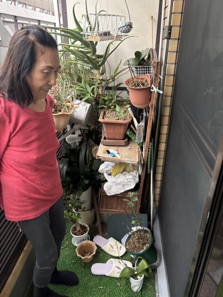 少しずつ増えていった植木鉢や棚が、いつしか