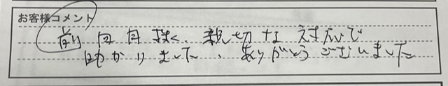 【前回同様、親切な対応で助かりました。ありがとうございました。】