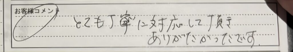 「とても丁寧に対応して頂きありがたかったです。」